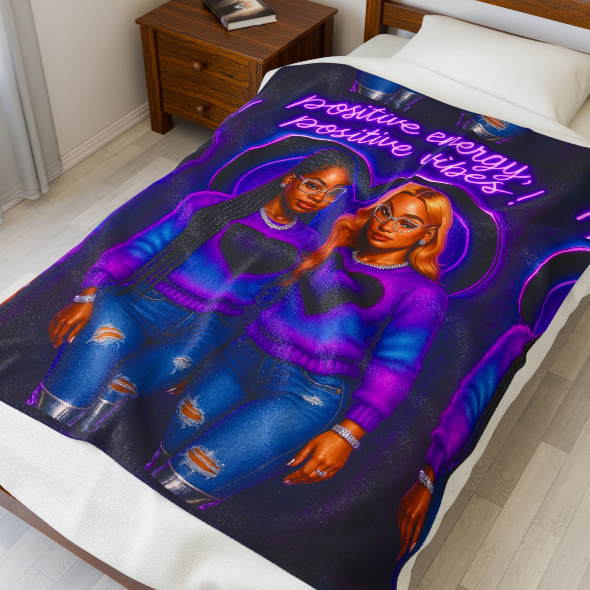 Positive Energy Plush Blanket, Cozy Throw, Inspirational Gift, Home Decor, Self-Care Must-Have, Motivational Blanket
